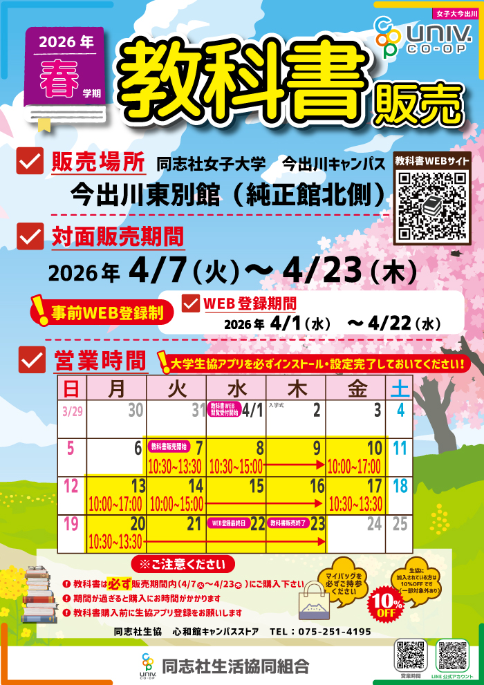 ・教科書販売会場でのお支払いは大学生協アプリ(電子マネー)でのご協力をお願いいたします